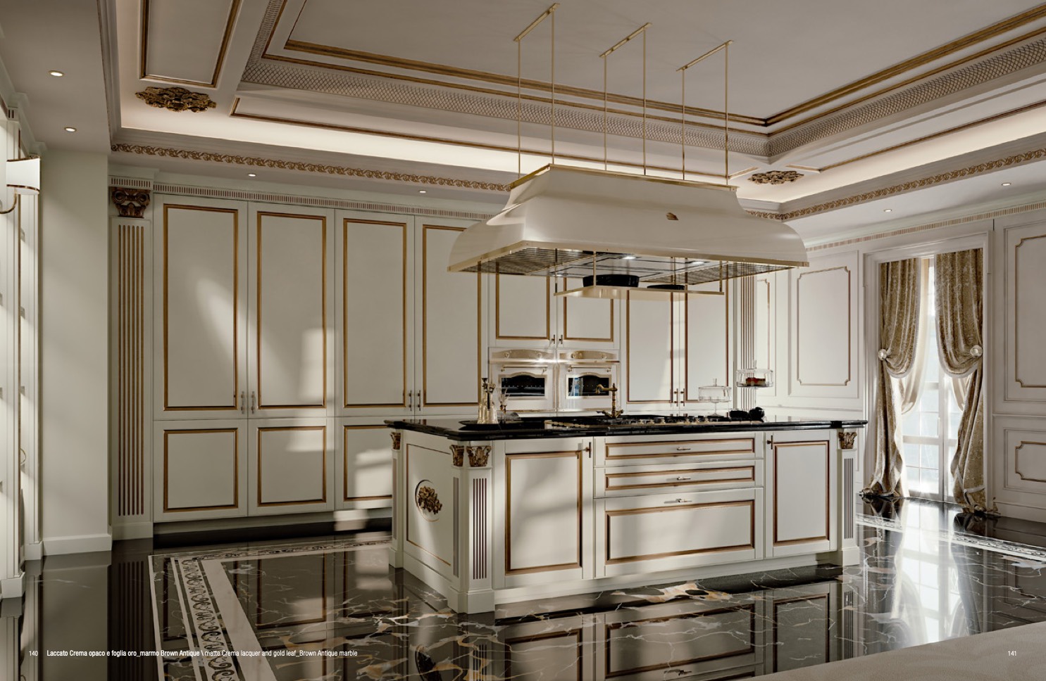 140 Laccato Crema opaco e foglia oro_marmo Brown Antique \ matte Crema lacquer and gold leaf_Brown Antique marble