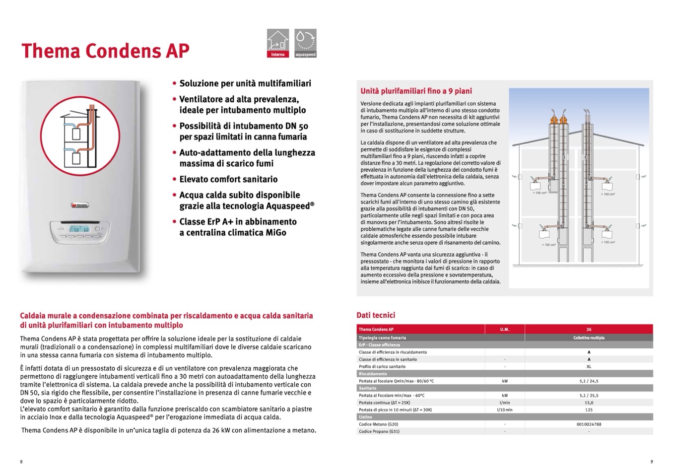 Thema Condens AP è disponibile in un’unica taglia di potenza da 26 kW con alimentazione a metano.