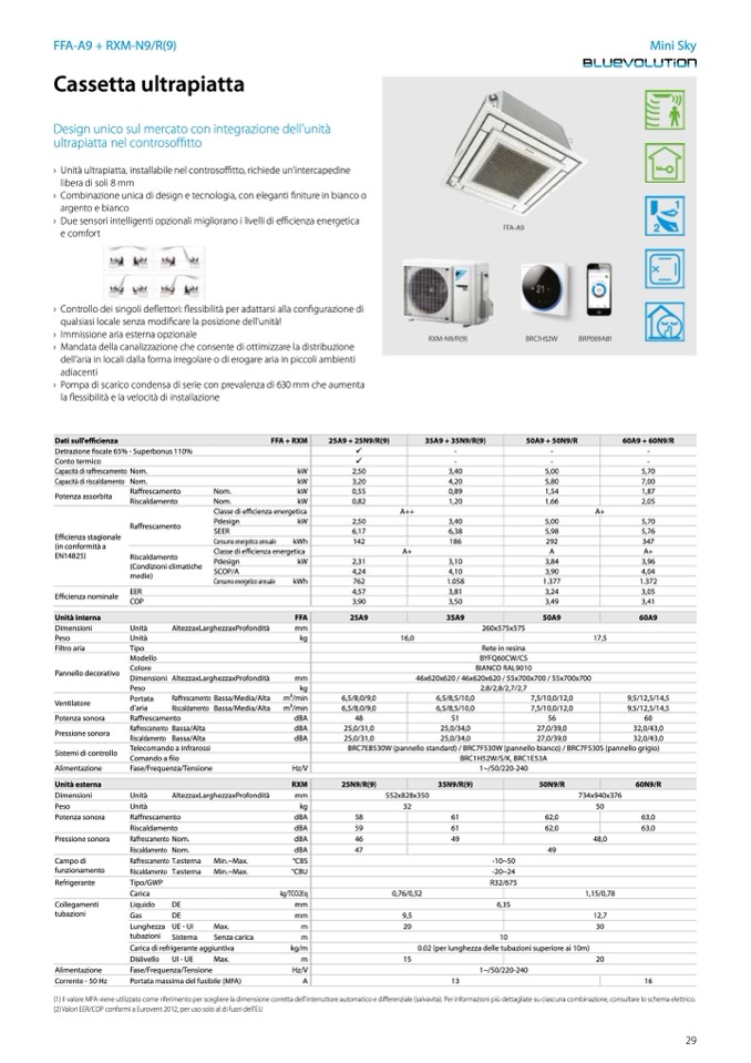 › Unità ultrapiatta, installabile nel controsoffitto, richiede un'intercapedine
