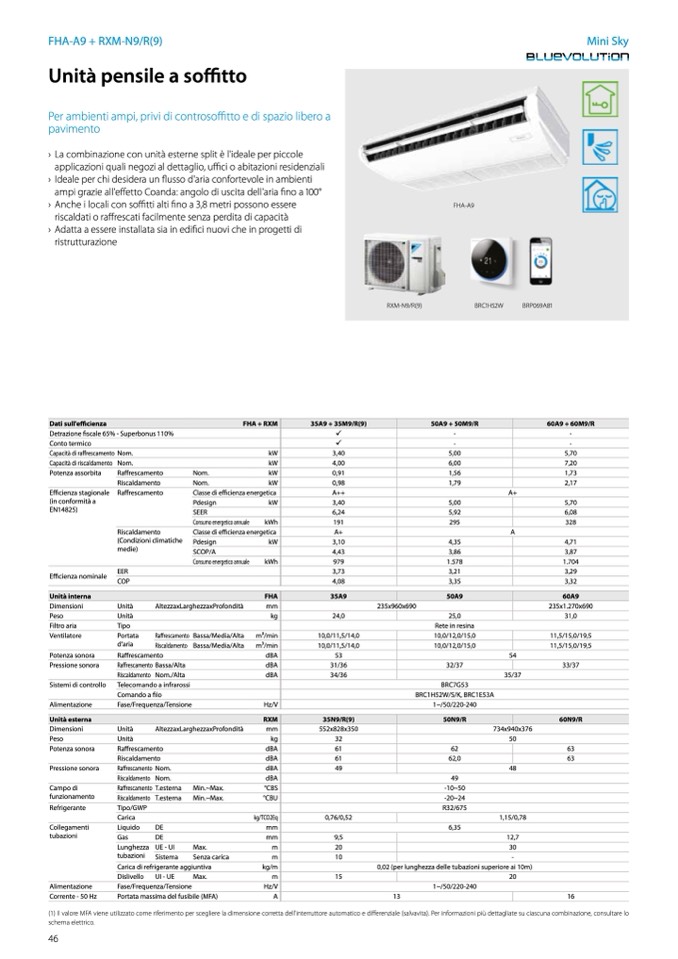 (1) Il valore MFA viene utilizzato come riferimento per scegliere la dimensione corretta dell'interruttore automatico e differenziale (salvavita). Per informazioni più dettagliate su ciascuna combinazione, consultare lo