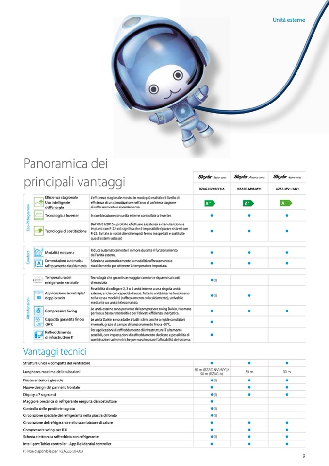 Le unità esterne sono provviste del compressore swing Daikin, rinomato