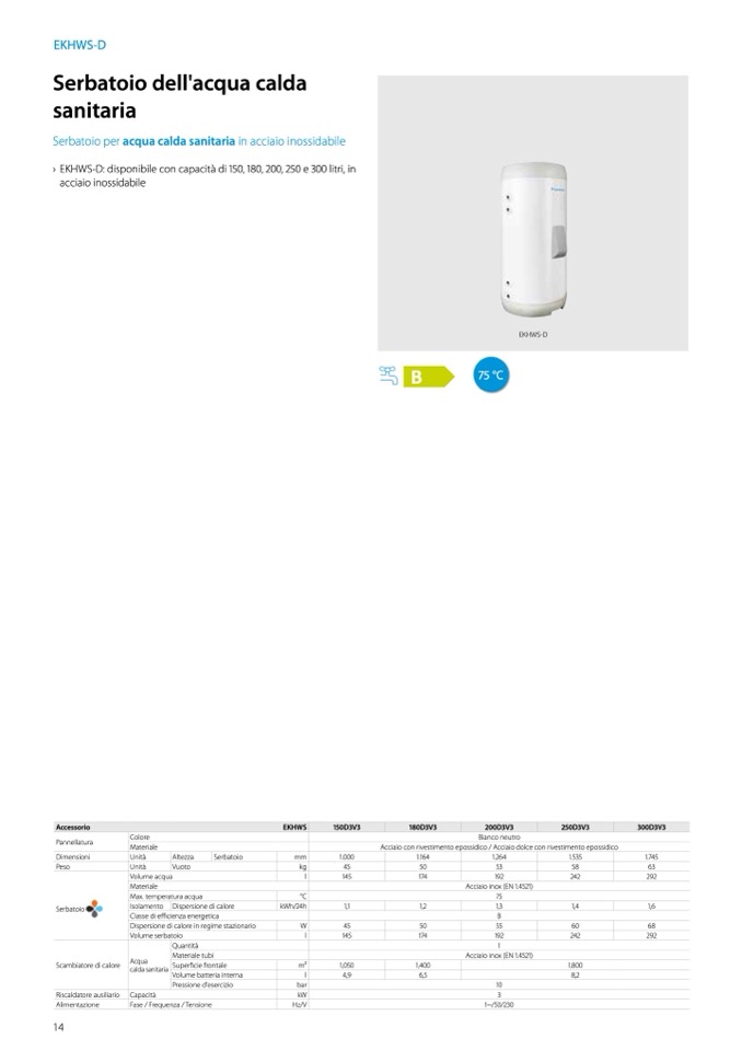 › EKHWS-D: disponibile con capacità di 150, 180, 200, 250 e 300 litri, in