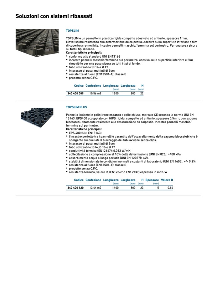 bloccatubi, altamente resistente alla deformazione da calpestio. Incastro pannelli maschio/