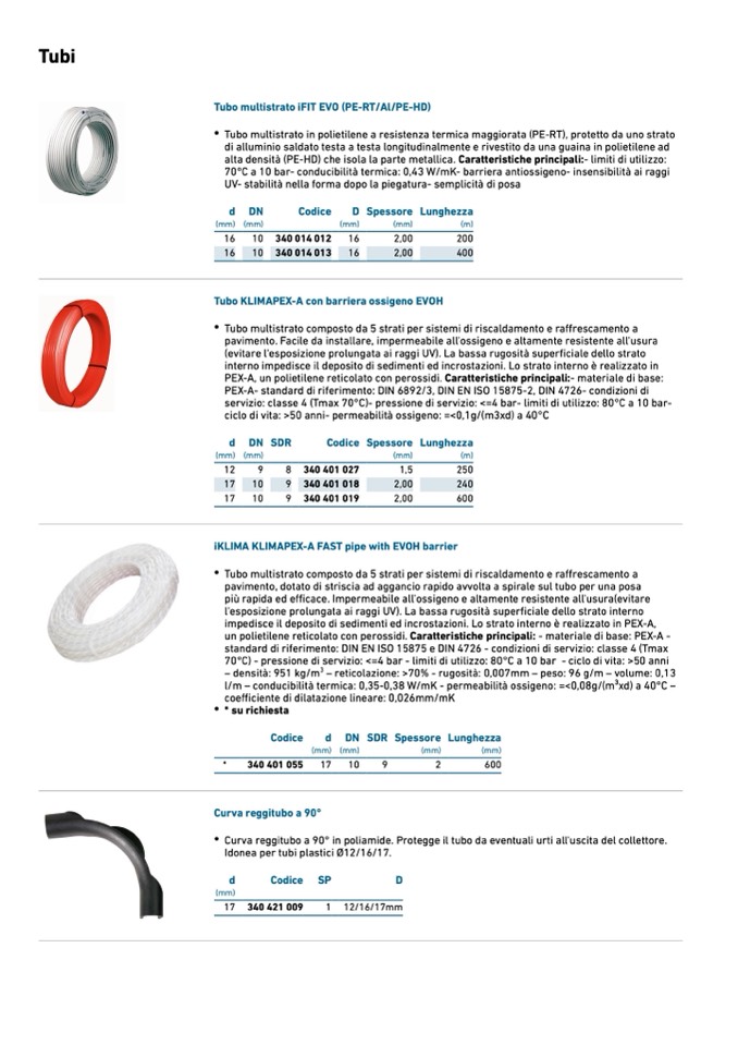 PEX-A, un polietilene reticolato con perossidi. Caratteristiche principali:- materiale di base: