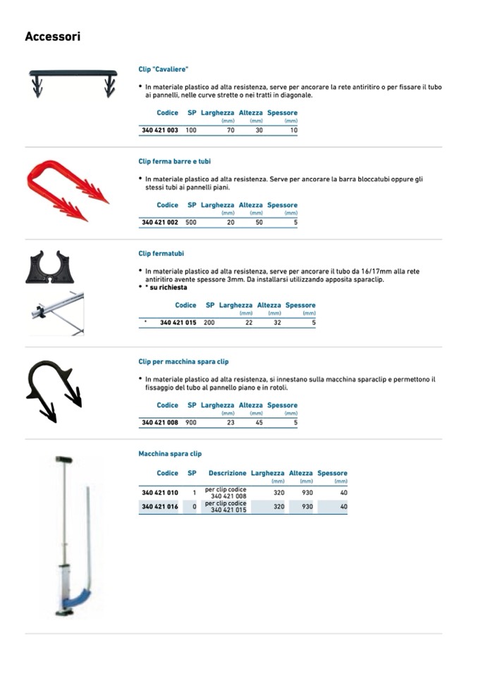 In materiale plastico ad alta resistenza, serve per ancorare la rete antiritiro o per fissare il tubo