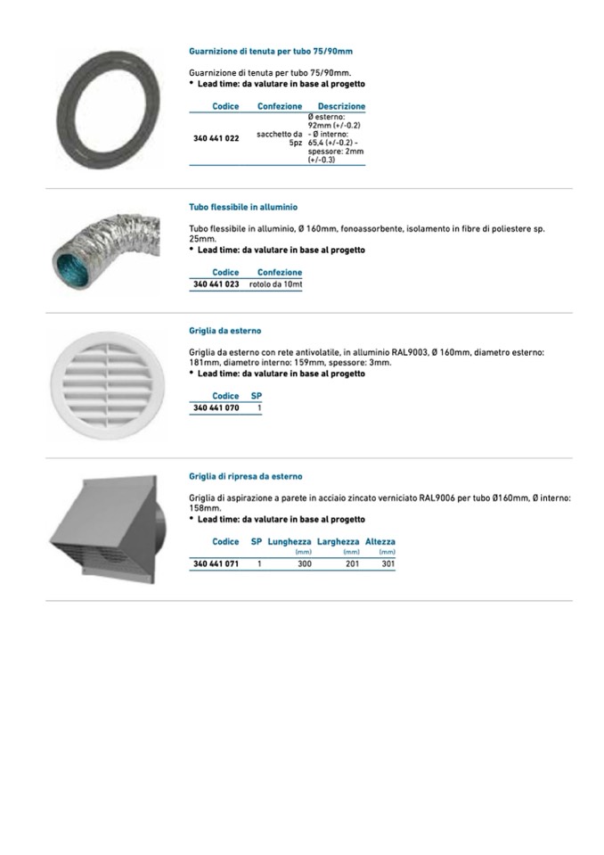 Tubo flessibile in alluminio, Ø 160mm, fonoassorbente, isolamento in fibre di poliestere sp.