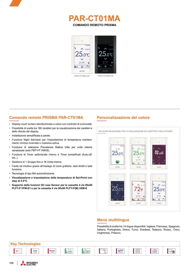 • Display touch screen retroilluminato a colori con controllo di luminosità.