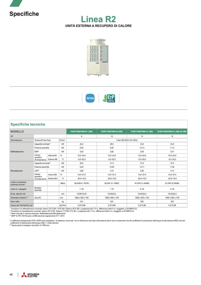 *I coefficienti prestazionali COP e EER sono prestazioni di sistema e come tali non si riferiscono solo alla unit