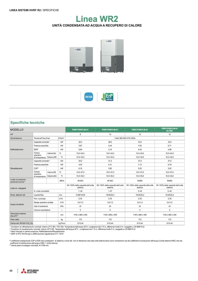 *I coefficienti prestazionali COP e EER sono prestazioni di sistema e come tali non si riferiscono solo alla unit