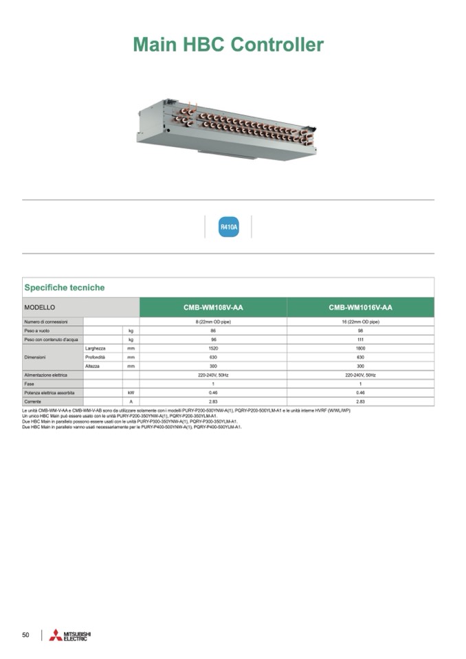 Le unità CMB-WM-V-AA e CMB-WM-V-AB sono da utilizzare solamente con i modelli PURY-P200-500YNW-A(1), PQRY-P200-500YLM-A1 e le unità interne HVRF (W/WL/WP)