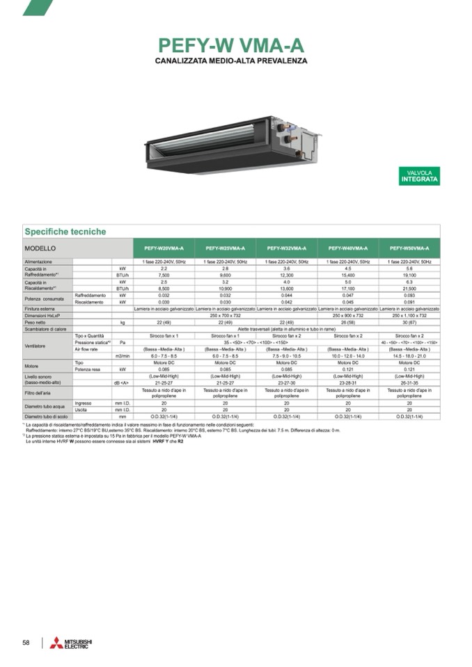La pressione statica esterna è impostata su 15 Pa in fabbrica per il modello PEFY-W VMA-A