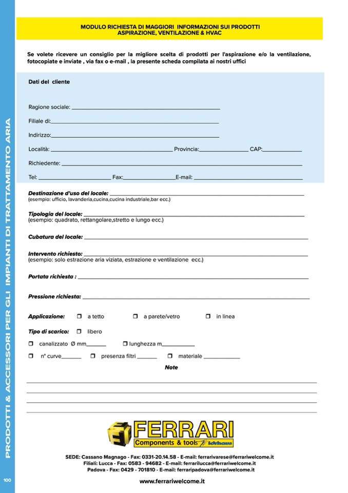 Se volete ricevere un consiglio per la migliore scelta di prodotti per l'aspirazione e/o la ventilazione,