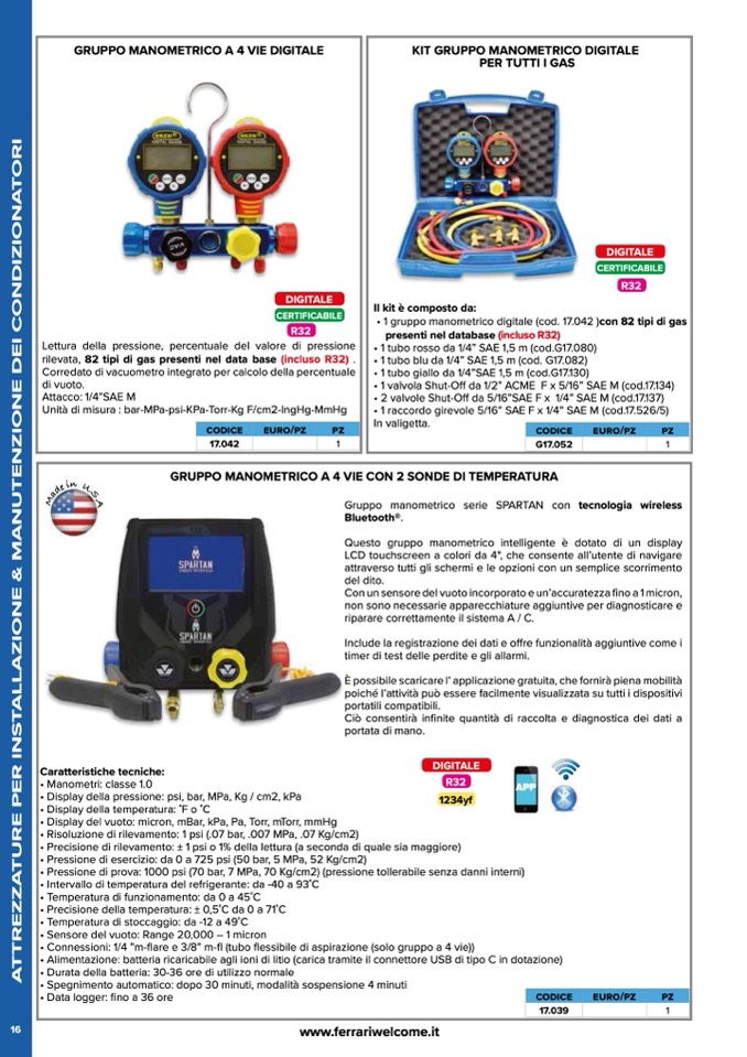 • 1 gruppo manometrico digitale (cod. 17.042 )con 82 tipi di gas