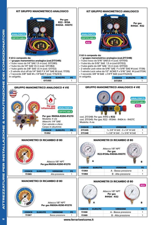 cod. Z17.045: Per gas: R22 - R134A - R404 A - R407C