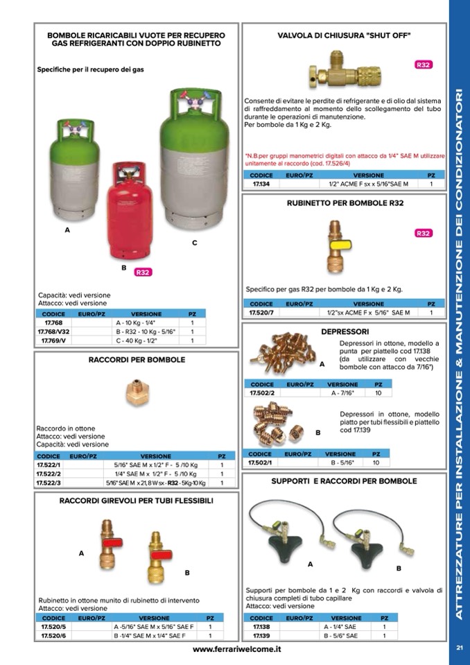 Specifico per gas R32 per bombole da 1 Kg e 2 Kg.