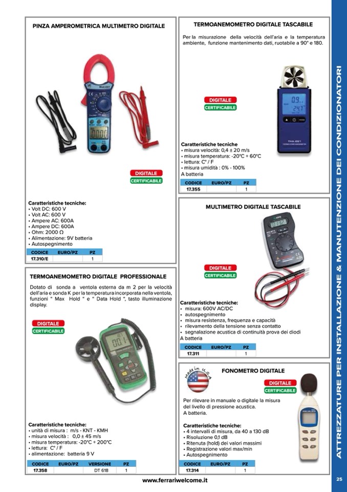• misura temperatura: -20°C + 200°C