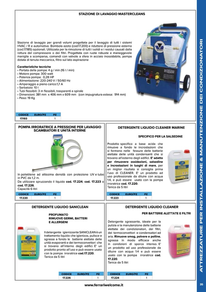 (cod.17.185) opzionali. Utilizzata per la rimozione di tutti i solidi e i residui causati dalla