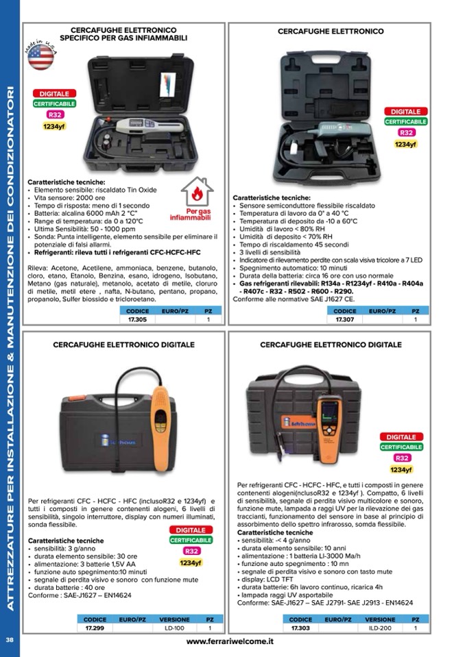 • Refrigeranti: rileva tutti i refrigeranti CFC-HCFC-HFC