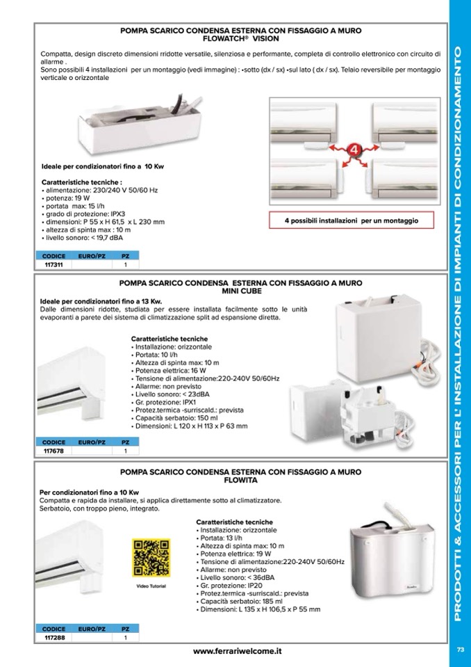 POMPA SCARICO CONDENSA ESTERNA CON FISSAGGIO A MURO