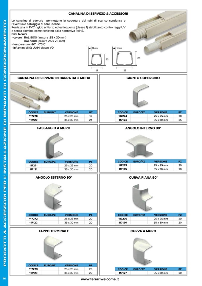 Realizzata in PVC rigido antiurto ed estinguente (classe 1) stabilizzato contro raggi UV