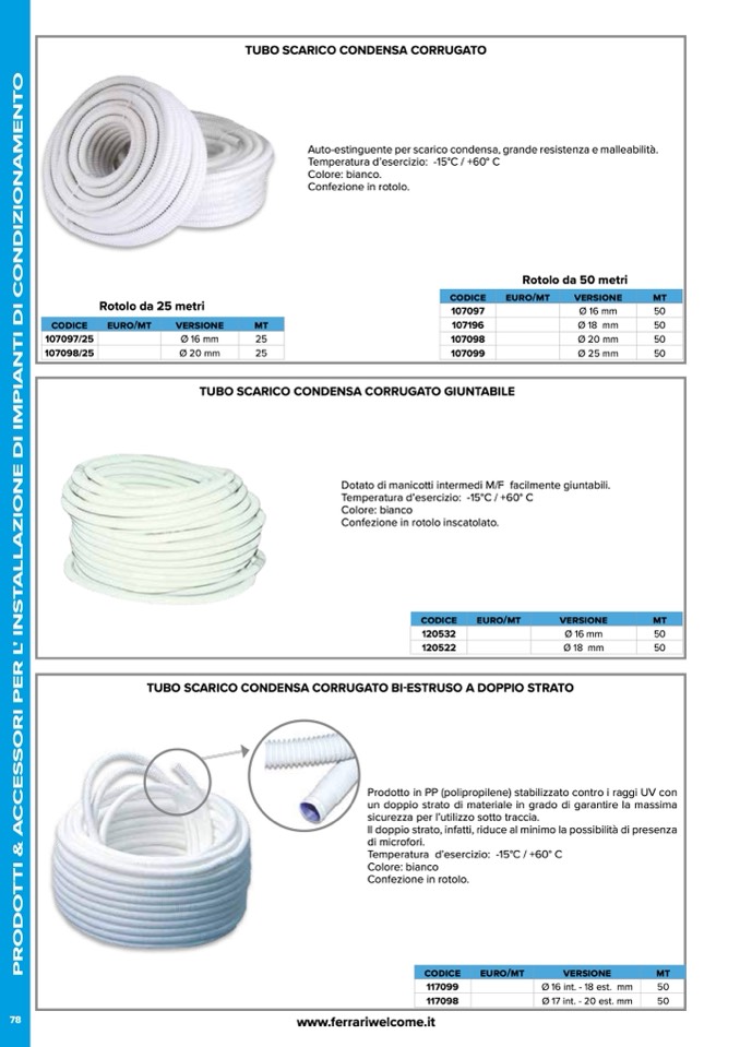 Auto-estinguente per scarico condensa, grande resistenza e malleabilità.