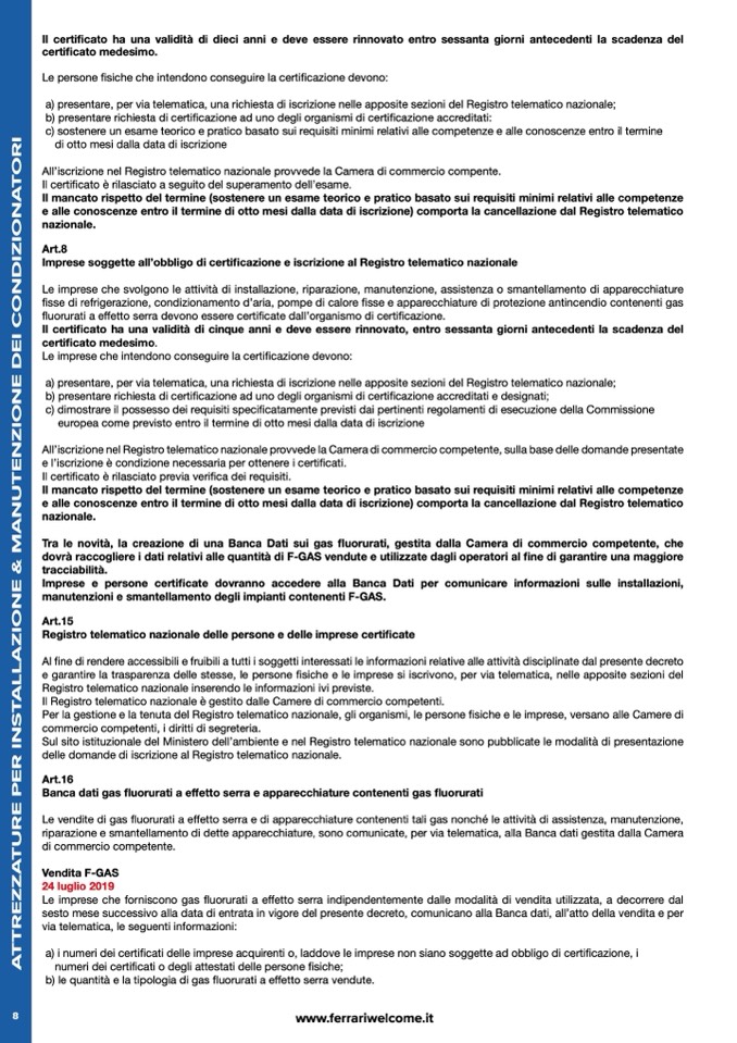 Tra le novità, la creazione di una Banca Dati sui gas fluorurati, gestita dalla Camera di commercio competente, che