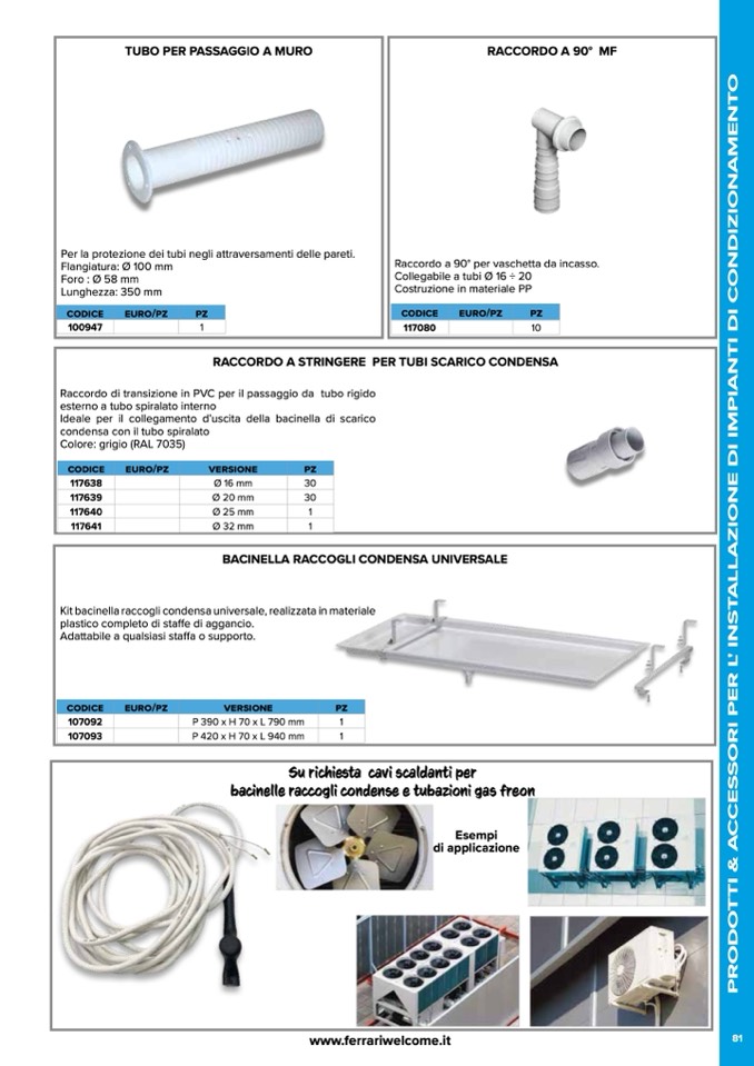 bacinelle raccogli condense e tubazioni gas freon