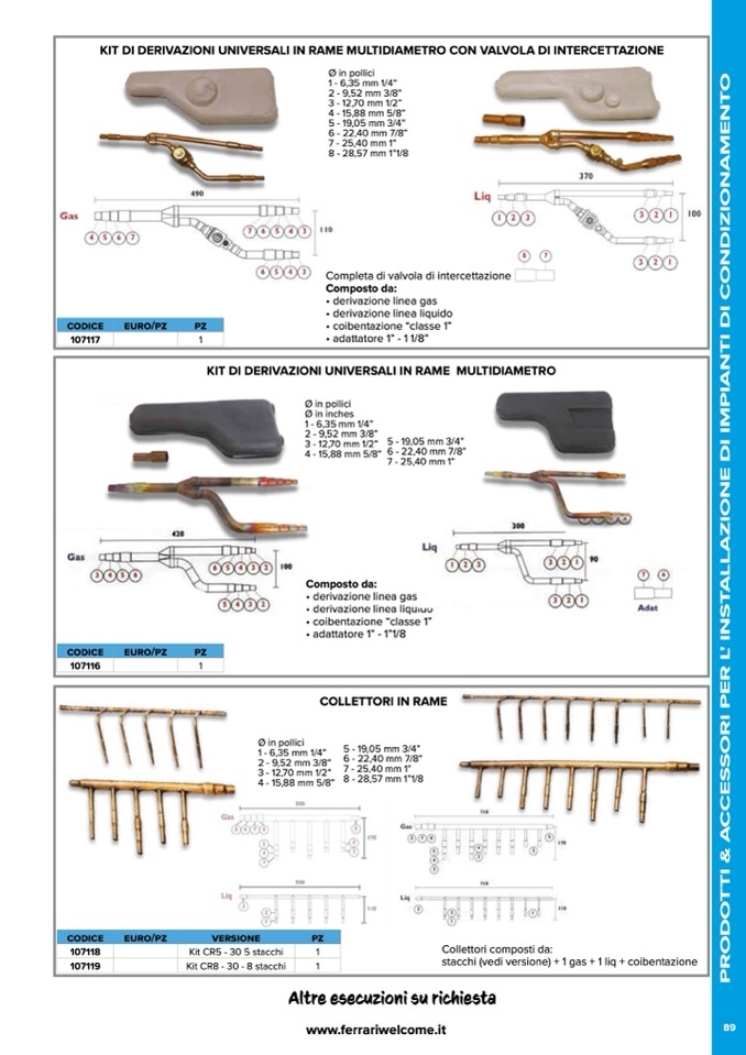 KIT DI DERIVAZIONI UNIVERSALI IN RAME MULTIDIAMETRO