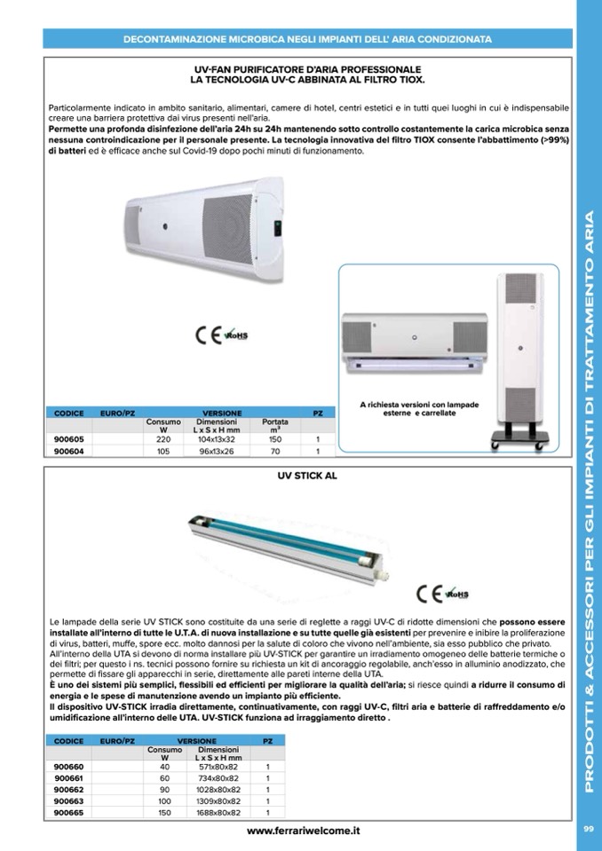 umidificazione all’interno delle UTA. UV-STICK funziona ad irraggiamento diretto .