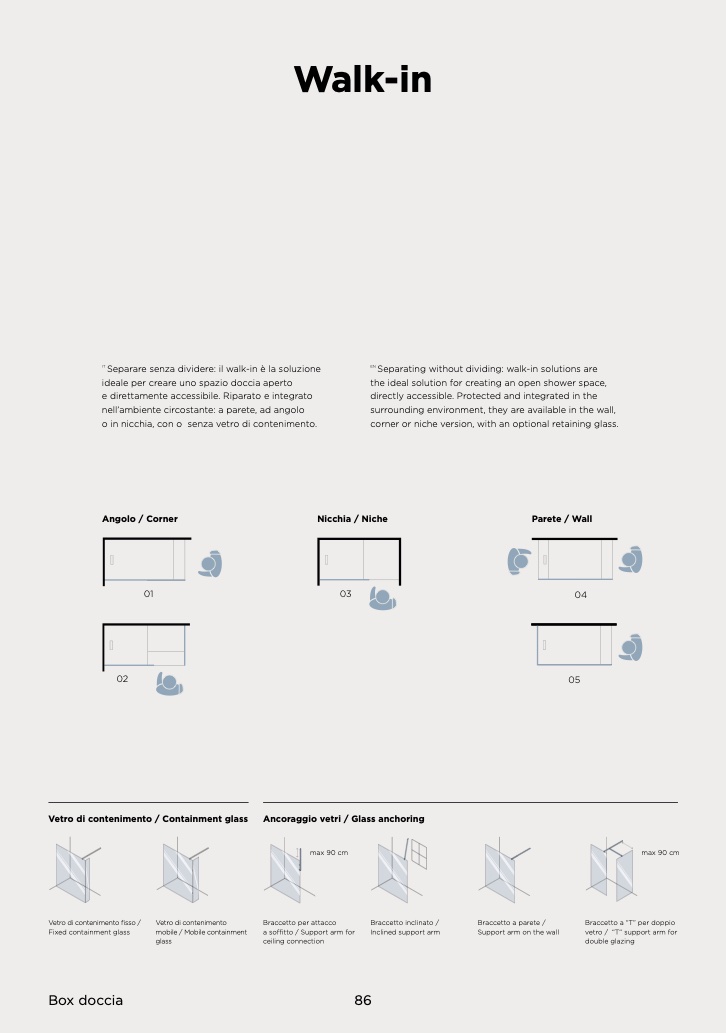 corner or niche version, with an optional retaining glass