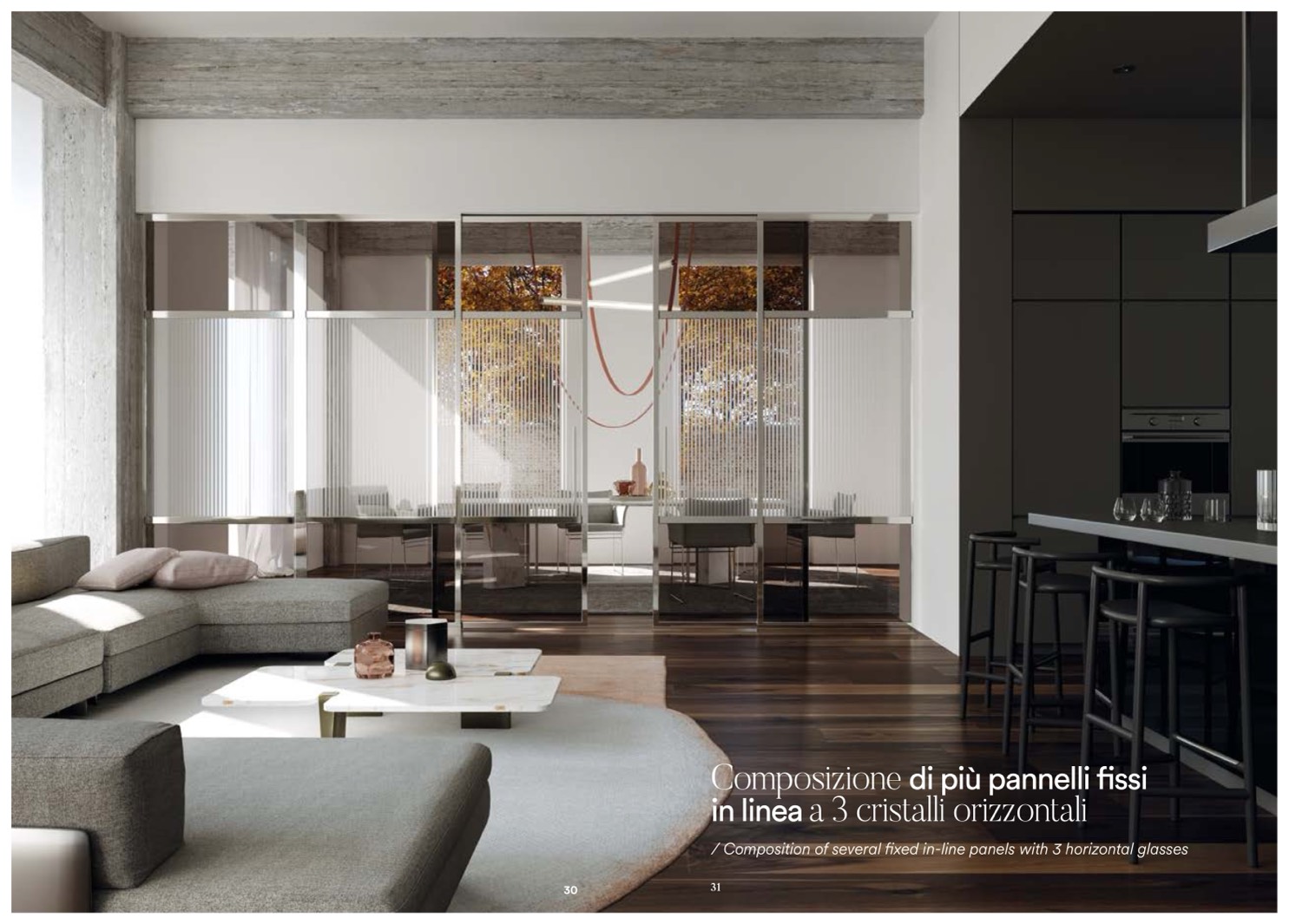 / Composition of several fixed in-line panels with 3 horizontal glasses