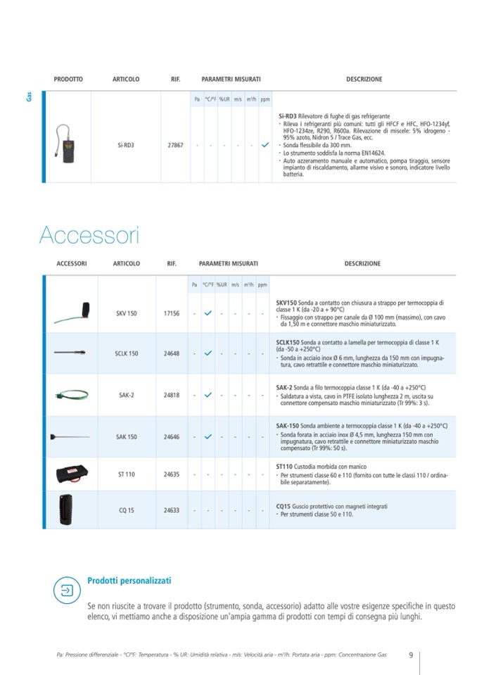 Pa: Pressione differenziale - °C/°F: Temperatura - % UR: Umidità relativa - m/s: Velocità aria - m