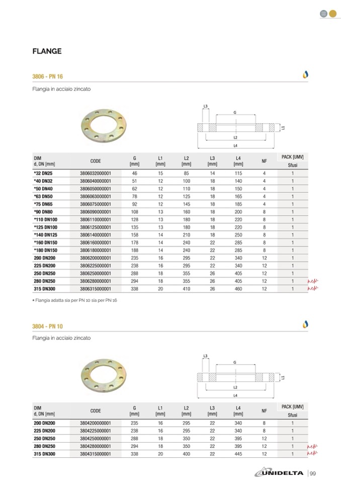 * Flangia adatta sia per PN 10 sia per PN 1
