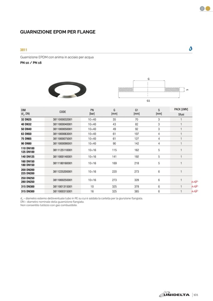 d e = diametro esterno dell’eventuale tubo in PE su cui è saldata la cartella per la giunzione