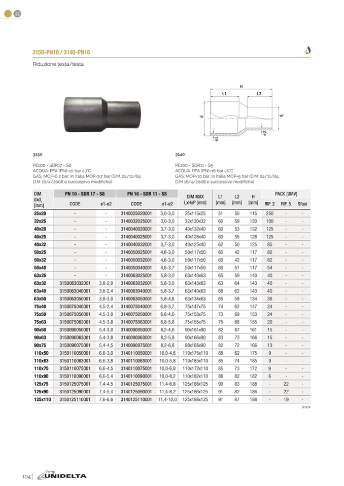 GAS: MOP=10 bar; In Italia MOP=5 bar (D.M. 24/11/84