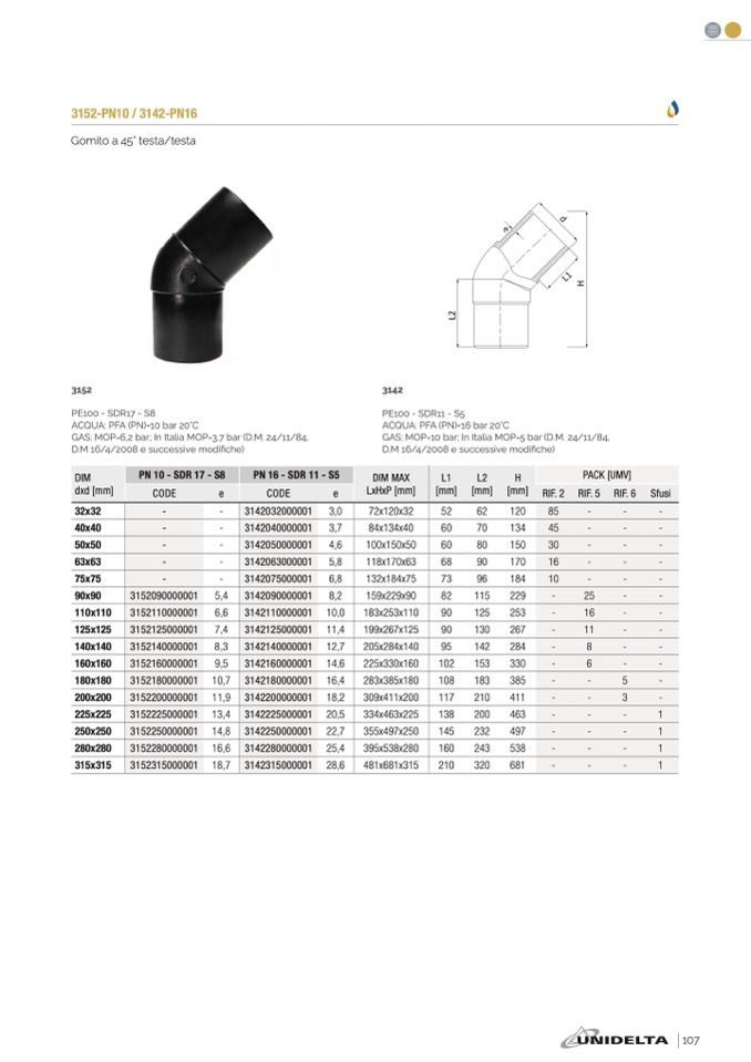 GAS: MOP=10 bar; In Italia MOP=5 bar (D.M. 24/11/84
