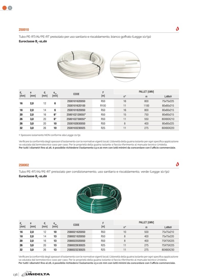 va valutata dal termotecnico caso per caso. Per le proprietà della guaina isolante si faccia riferimento al manuale tecnico Unidelta