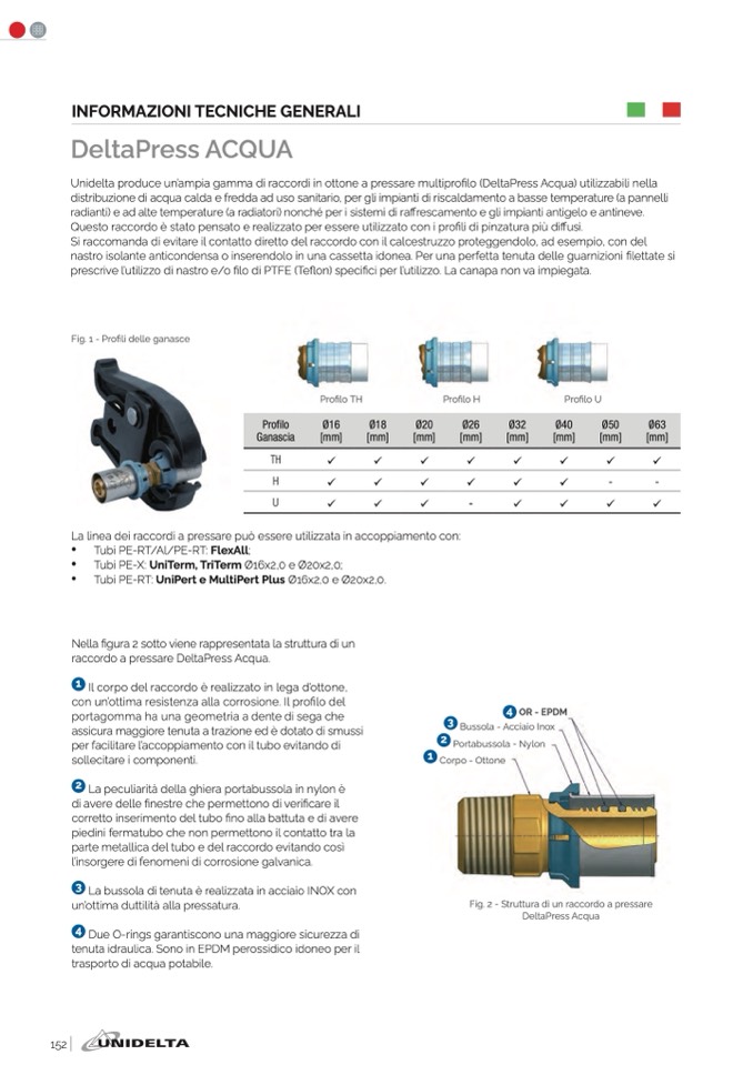 Unidelta produce un’ampia gamma di raccordi in ottone a pressare multiprofilo (DeltaPress Acqua) utilizzabili nell