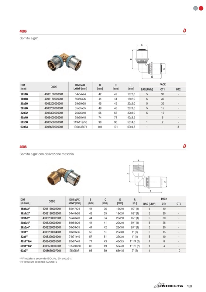 (1) Filettatura secondo ISO 7/1, EN 10226-