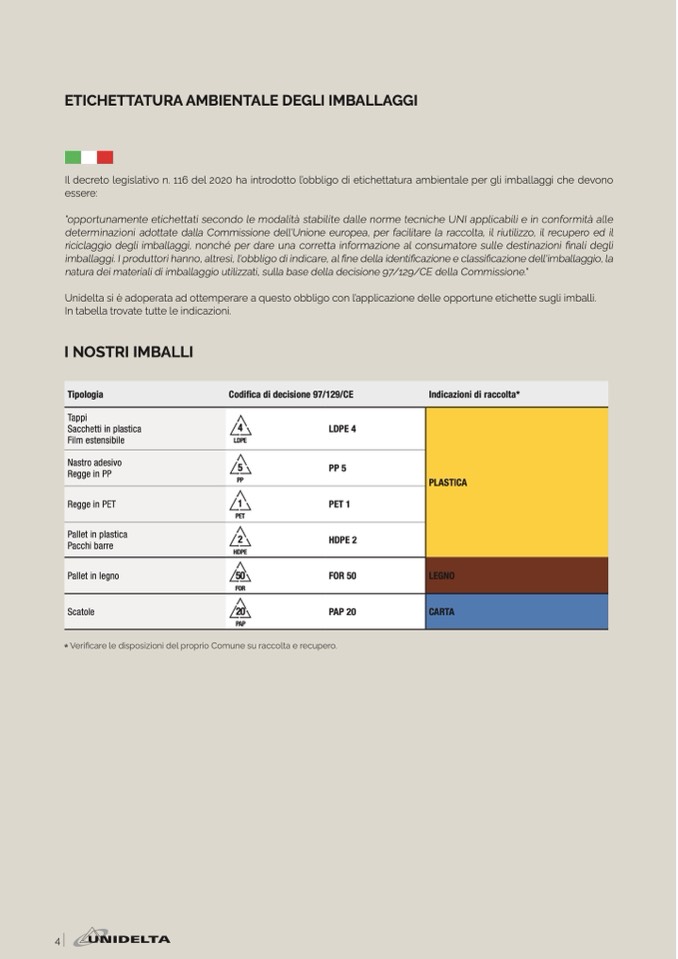 Unidelta si è adoperata ad ottemperare a questo obbligo con l’applicazione delle opportune etichette sugli imballi.