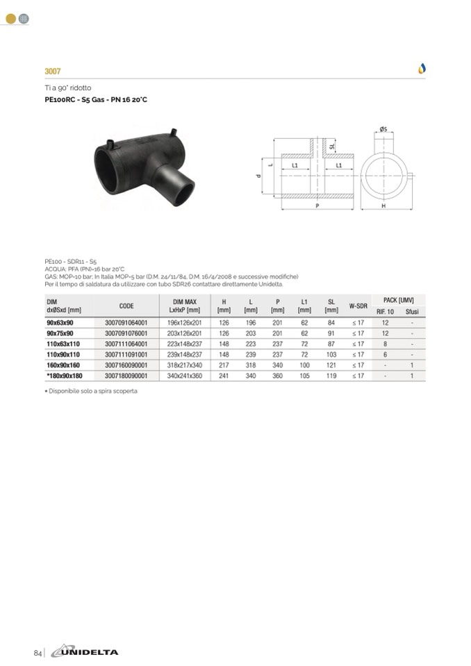 GAS: MOP=10 bar; In Italia MOP=5 bar (D.M. 24/11/84, D.M. 16/4/2008 e successive modi