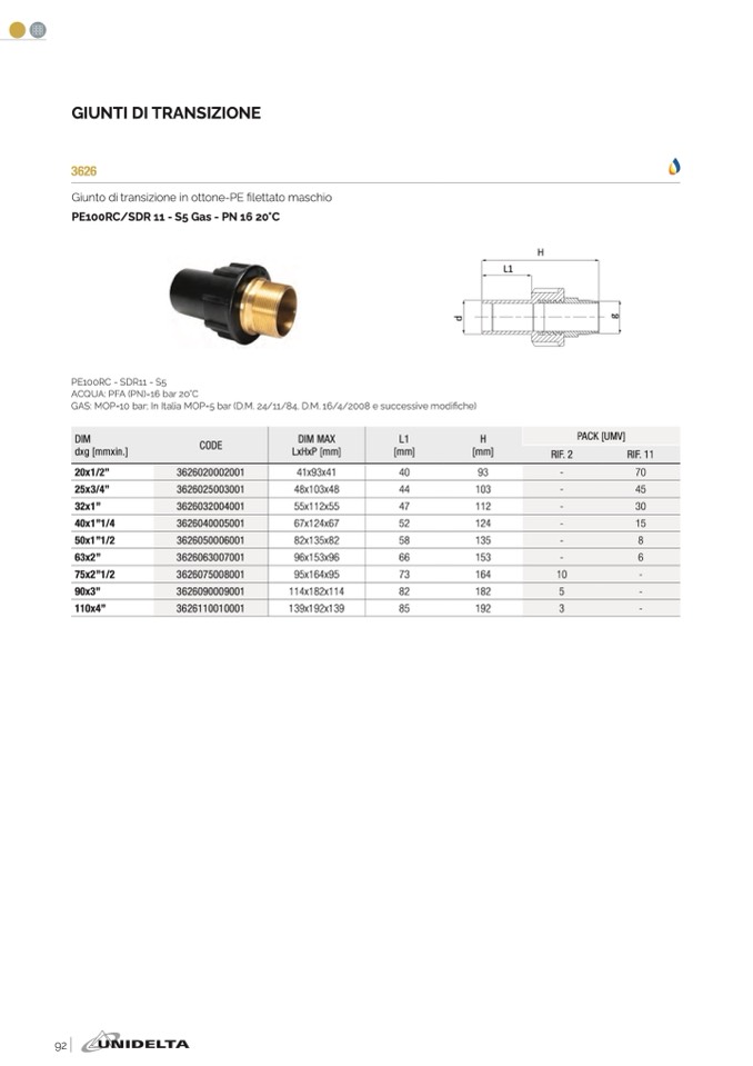 GAS: MOP=10 bar; In Italia MOP=5 bar (D.M. 24/11/84, D.M. 16/4/2008 e successive modi