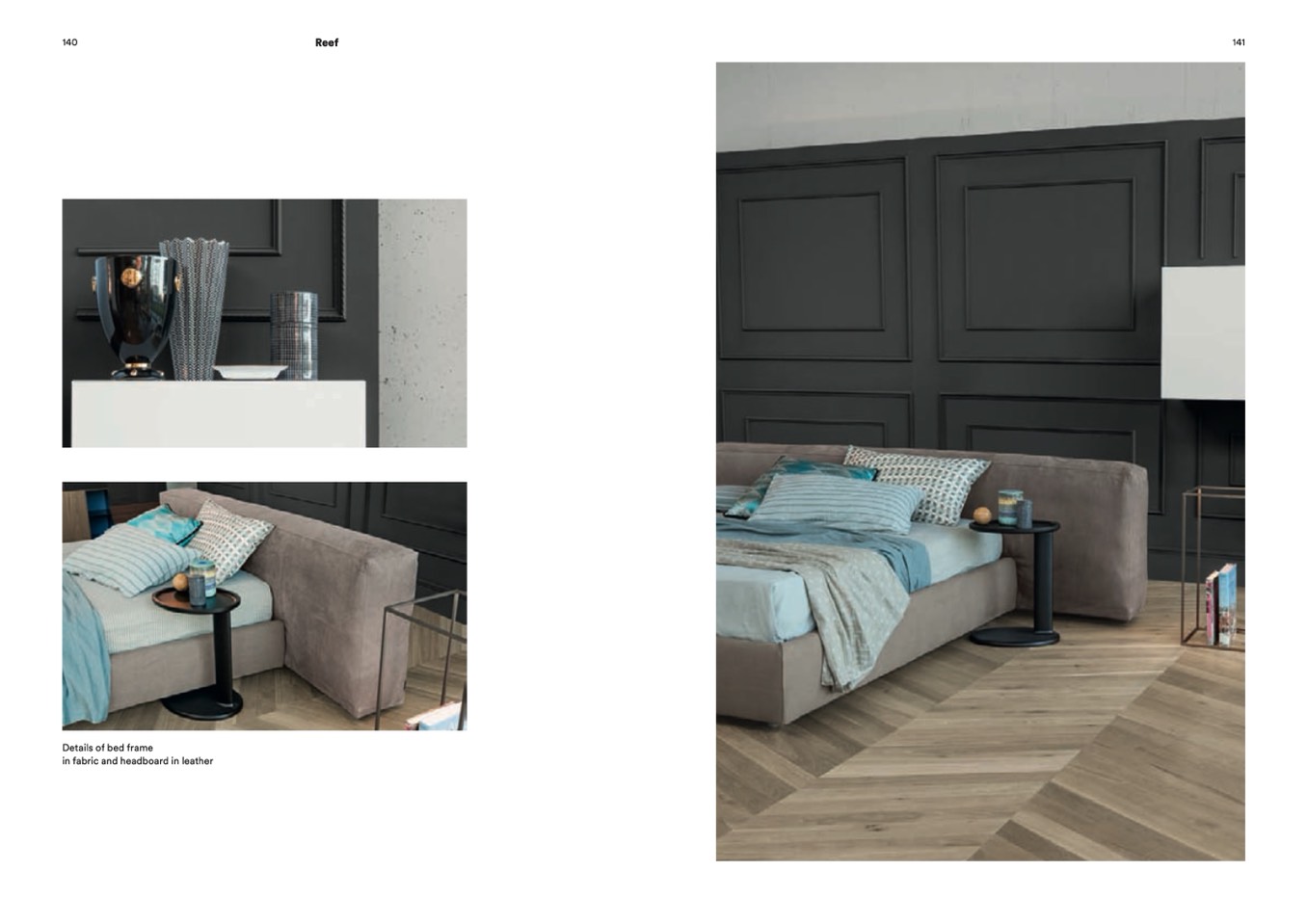 in fabric and headboard in leather
