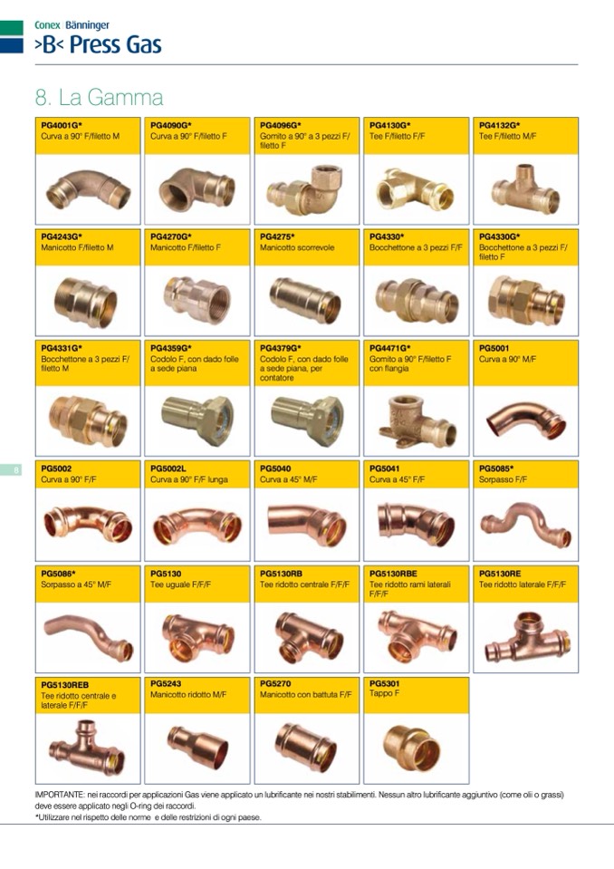 IMPORTANTE: nei raccordi per applicazioni Gas viene applicato un lubrificante nei nostri stabilimenti. Nessun altro lubrificante aggiuntivo (come olii o grassi)