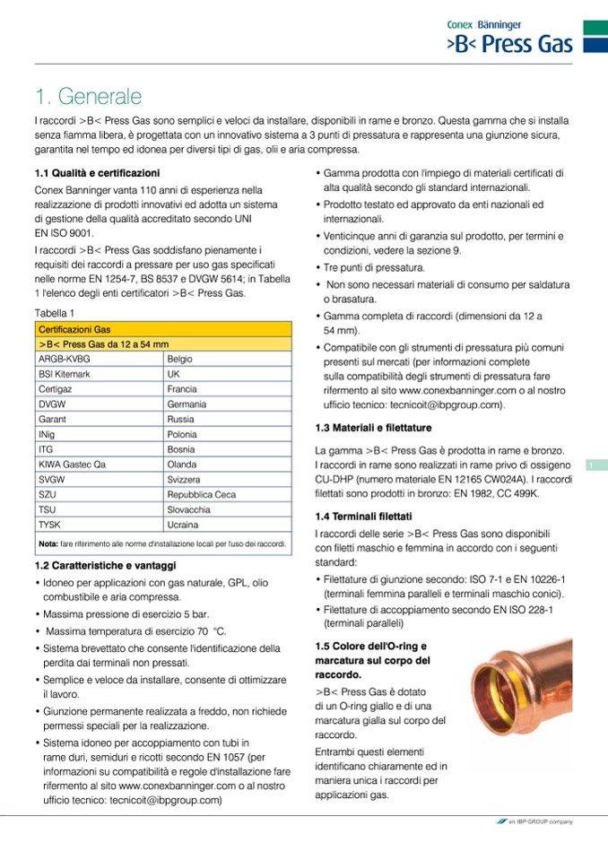 I raccordi >B< Press Gas soddisfano pienamente i