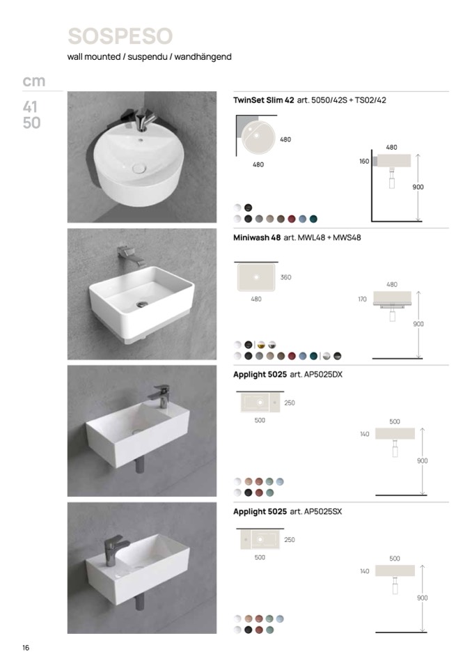 wall mounted / suspendu / wandhängend
