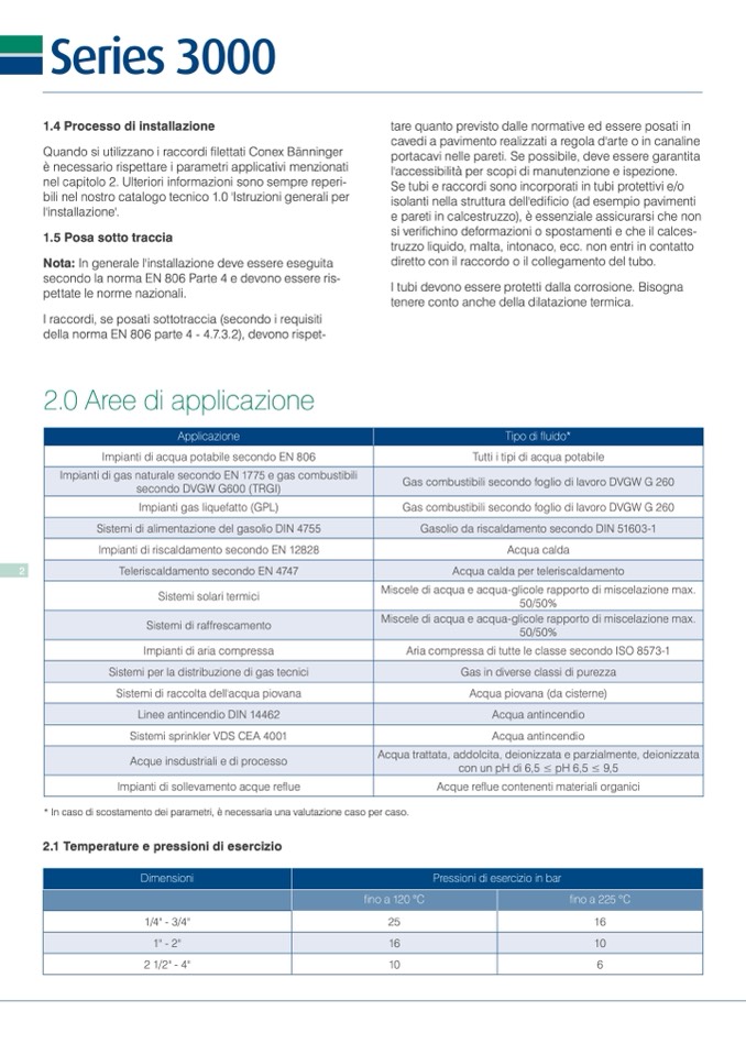 2.1 Temperature e pressioni di esercizio