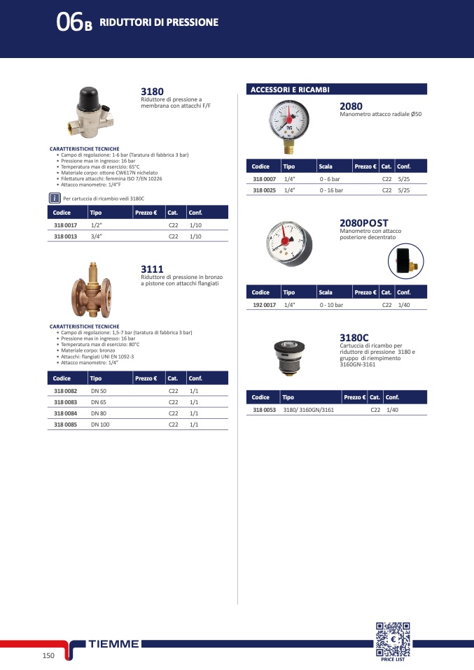 Campo di regolazione: 1-6 bar (Taratura di fabbrica 3 bar)