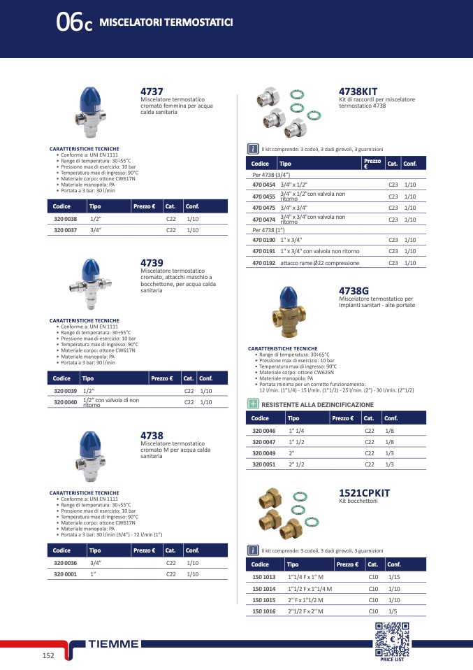 Il kit comprende: 3 codoli, 3 dadi girevoli, 3 guarnizioni