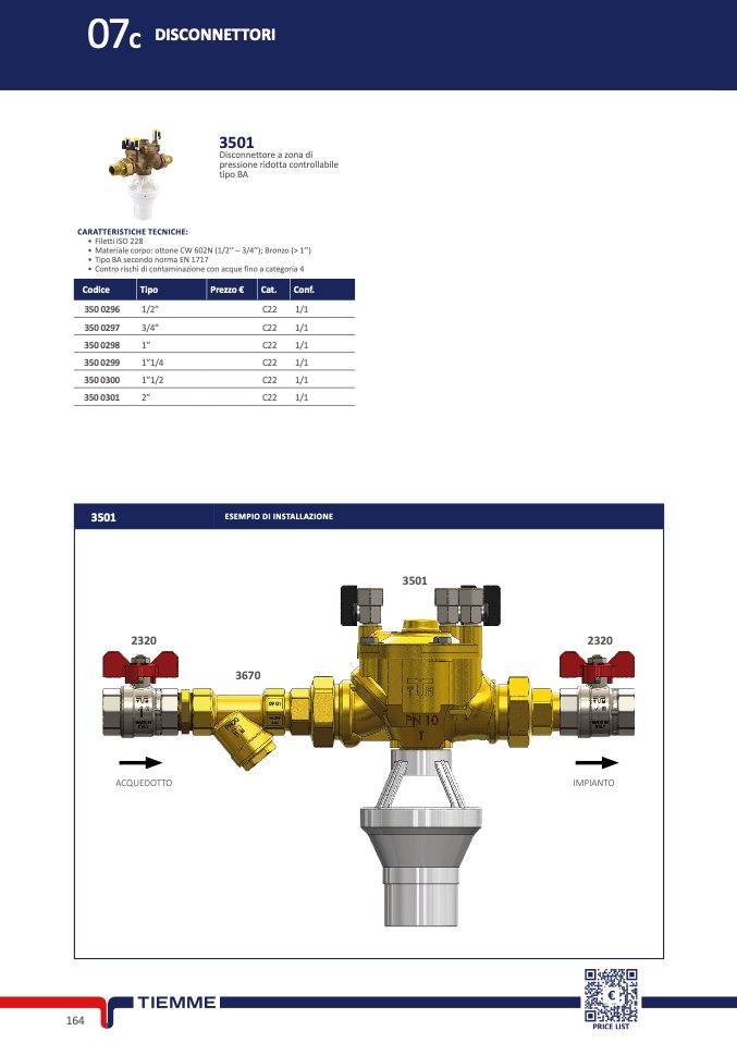 Materiale corpo: ottone CW 602N (1/2’’ – 3/4’’); Bronzo (> 1’’)